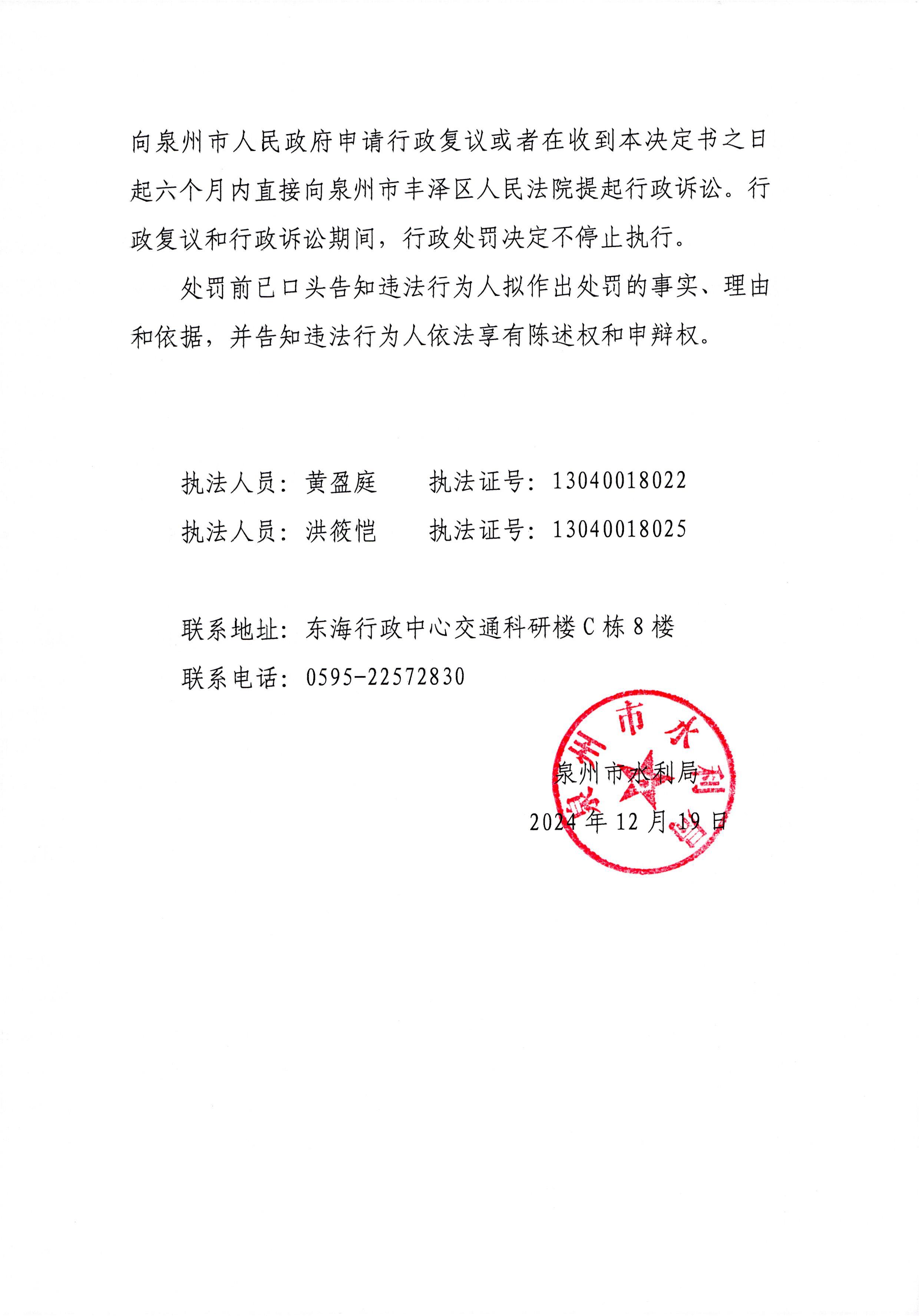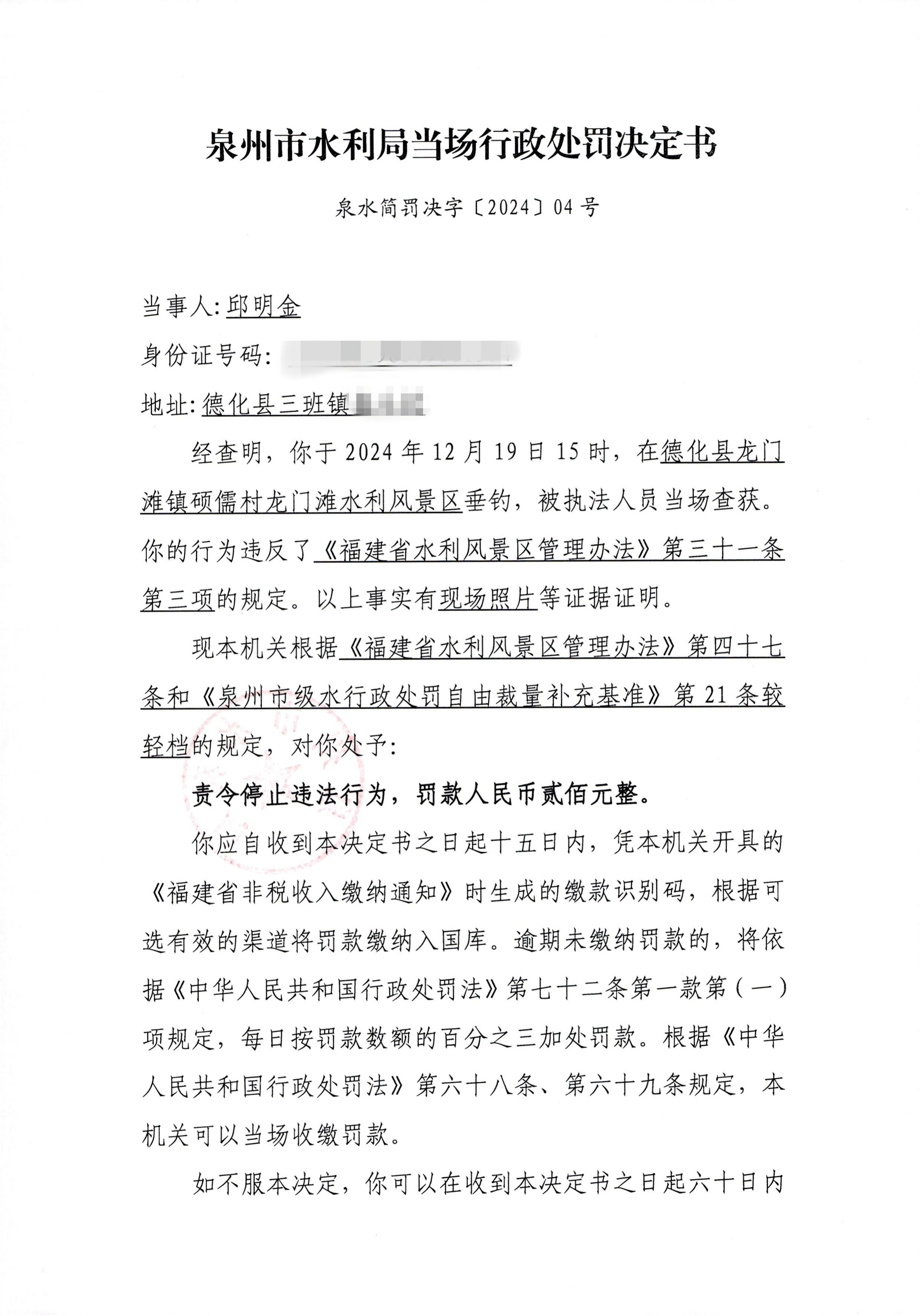 当场行政处罚决定书(泉水简罚字〔2024〕第04号)